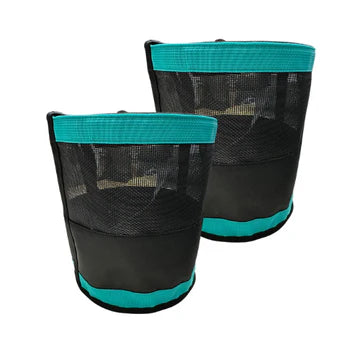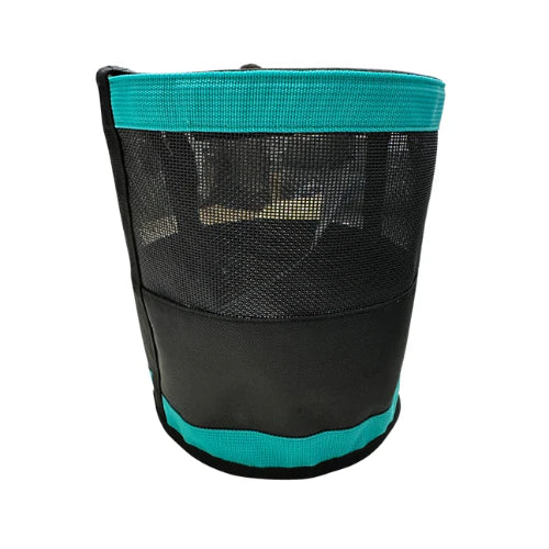 Grain Guard Equine is a custom-designed mesh feed bag that easily slips over your horse's ears, ensuring individual feeding while preventing fighting, stealing, and spillage. This innovative solution creates a safe and relaxing mealtime environment for horses in a group setting.