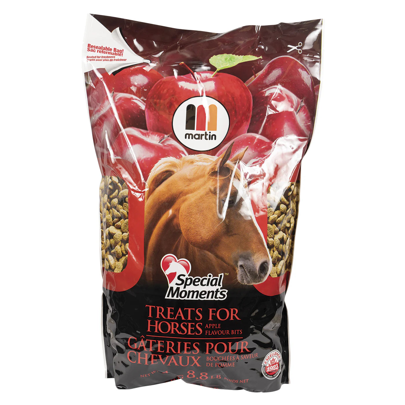 Martin’s Special Moments horse treats are constructed in cube shapes for convenience with a resealable package designed to help maintain optimum freshness. Martin’s Treats are extruded to help improve digestibility and to create a uniform texture. Complete with an apple flavour that your horse is sure to love.